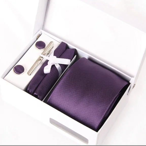2016 남성 슬림 목에 두르는 남성 mariage 넥타이 보라색 고체 gravata 정장 비즈니스 kravat 겐트 웨딩 커프스 손수건 목 넥타이 세트 제품 쇼
