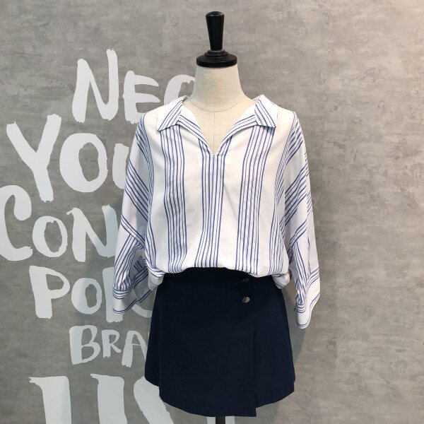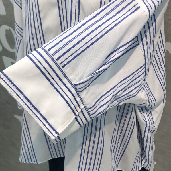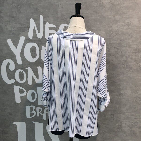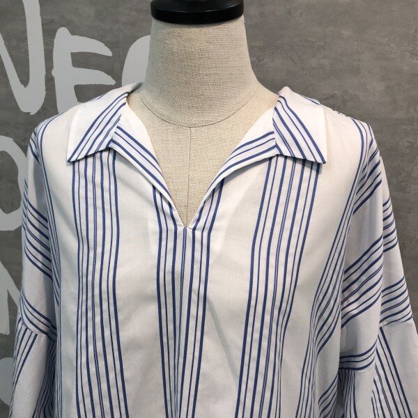 스트라이프 패턴무늬가 포인트되어 멋스럽고 세련된 카라넥 셔츠형으로 루즈한 핏감이 편안한 착용감과 활동성을 더해주는 아이템입니다