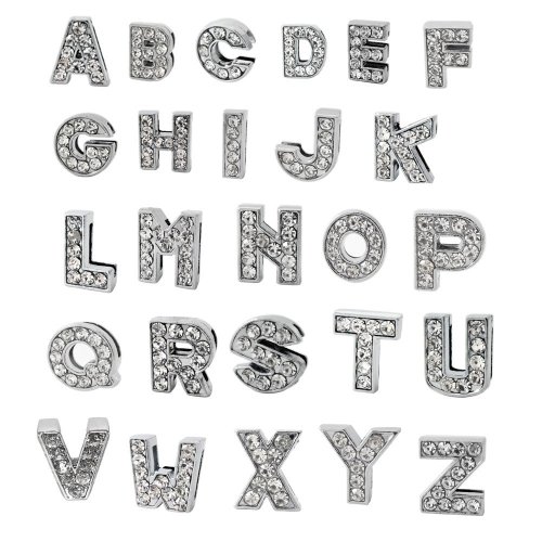 A-Z Letter Slide Charm, Nickel Free Alloy Rhinestone Beads 8mm