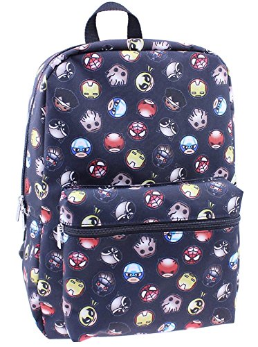 -. Feature : Marvel emoji 17 inch dual compartment backpack / Marvel characters Captain America, Ironman, Spider-man and more / Front pocket for kids accessories and travel items; Marvel logo zip pulls / Large compartment for school books or toys / Adjustable padded shoulder straps for comfort fit