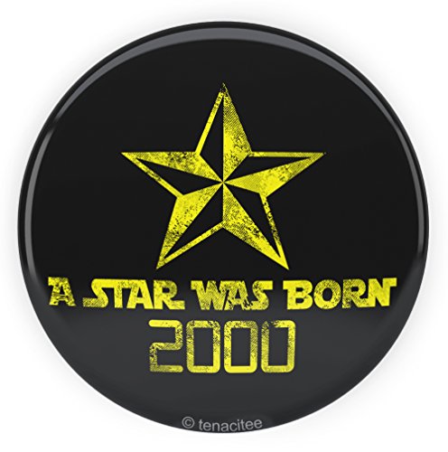 Binding : Apparel Product Description A Star Was Born 2000 2.25" Button by Tenacitee. Express yourself! Buttons are the perfect way to let the world know how you feel. Our buttons are designed, printed, and handmade at Tenacitee's studio in Oklahoma. Proudly made here in the USA! This 2.25" button has a metal shell with pinback and mylar cover to protect from scratches. Perfect to decorate your shirt, jacket, bag, or put anywhere else you want! It's a great gift or giveaway for parties. 0