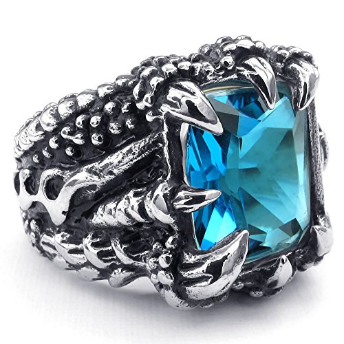 -. Title : KONOV Mens Crystal Stainless Steel Ring, Gothic Dragon Claw, Blue Silver