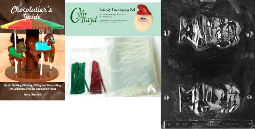 Cybrtrayd Hollow Waving Santa Chocolate Mold with Chocolatier's Bundle of 50 Cello Bags, 25 Green and 25 Red Twist Ties and Chocolatier's Guide