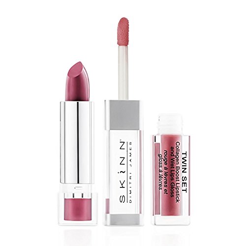 -. Title : Skinn Cosmetics Twin Set Collagen Boost Lipstick & Wet Lips Gloss - Shade: Frosted Fig