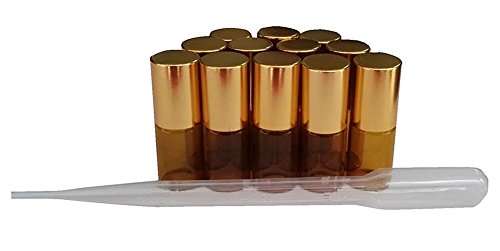 HugeStore 15 Pcs 5ml Refillable Amber Glass Rollerball Bottles Empty Essential Oil Glass Roller Bottles for Aromatherapy with 3ML Dropper