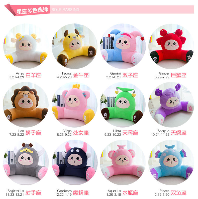 󰄬12星座办公室靠垫卡通午休腰枕大号椅子护腰靠枕靠背垫床头抱枕