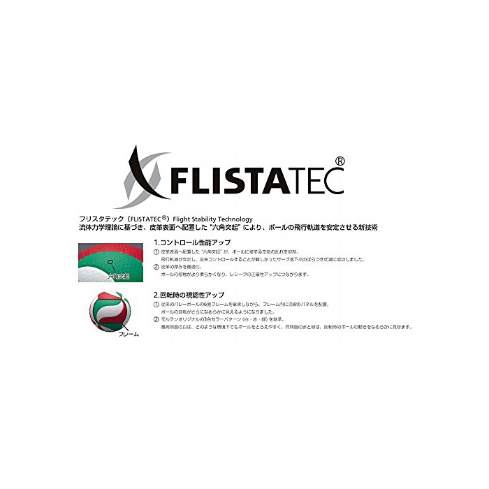 프리 스타 텍(FLISTATEC) Flight Stability Technology 유체역학 이론에 기초하고, 피혁 표면에 배려했다「육각 돌발」에 의해 볼의 비행 궤도를 안정 시키는 신기술을 채용!!