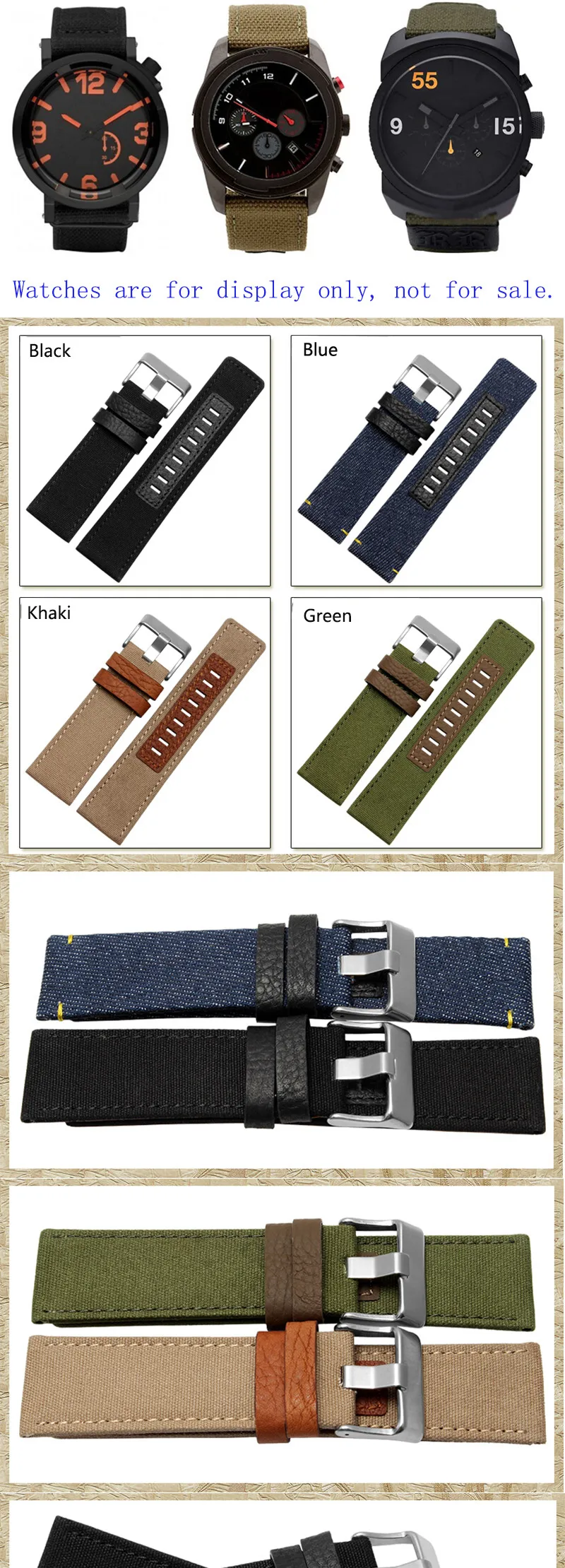 새로운 고정 스테인레스 스틸 버클 26 미리메터 캔버스 나일론 시계 스트랩 운동 방수 안티 땀 스트랩