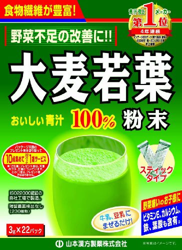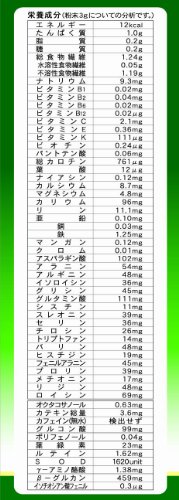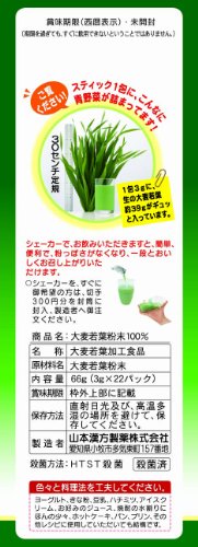 ● [Product Description] ● "young barley powder 100% stick type 3g × 22 packaging" is a 100% pure powder as it is collected dried and sterile-fine powder processing the barley young leaves. ● barley young leaves there is no habit to smell and taste among the green juice is the taste such as green tea. ● The young barley grew up in nature various minerals vitamins and protein has been included in the wealth. ● additives are not used at all. ● a easy and convenient you can use up to those who call the new year from the child. ● In addition even if mixed with milk or yogurt delicious. ● If the lack of vegetables those of vegetables hate one with a lot of unbalanced diet the lack of vegetables auxiliary of diet control is also recommended for those who calcium and dietary fiber is insufficient. ● [Precautions] ● After opening please use as soon as possible. ● Put the powder directly opening and because it may clog the throat please stop. ● flavor and store it in a refrigerator so compromised please be avoided as much as possible. ● This is a food product but please avoid to take a lot more than necessary. ● Because it is live please do not make every other. ● This product has been instructed to refrain from ingestion because it contains vitamin K ...