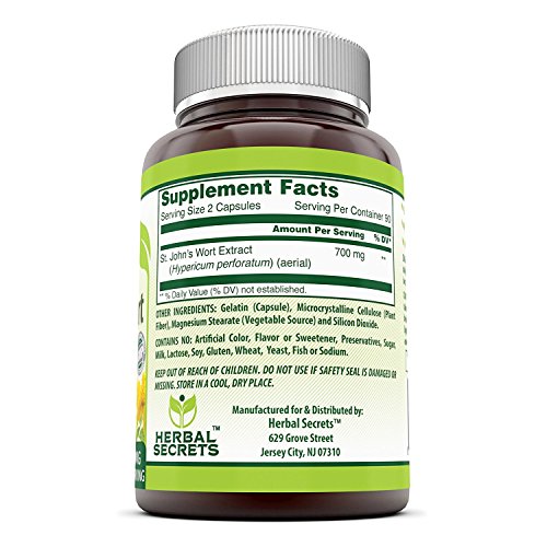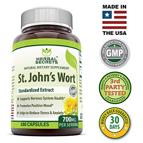 -. Binding : Health and Beauty -. Brand : Herbal Secrets -. Feature : St. John's Wort has been used for centuries as a tonic and helps to support emotional well-being and help maintain a peaceful mood / Herbal Secrets St. John's Wort is a double-strength formula that helps promote feelings of tranquility and a relaxed mental state / Discover your inner spirit of tranquility with St. John's Wort to help support a positive mood and a healthy emotional balance / Herbal Secrets easy-to-open capsules contains 700mg, 180 Capsules of pure St. John's wort powder that will easily dissolve in hot water, removing the need to deal with messy strainers and loose leaf / Herbal Secrets St. John's Wort is the ideal supplement to add to your diet. Our formula is standardized to contain 0.3% hypericin, so that you get more of the active chemical found in the herb -. Label : Herbal Secrets -. Manufacturer : Herbal Secrets -. ProductGroup : Health and Beauty -. ProductTypeName : HEALTH_PERSONAL_CARE -. Publisher : Herbal Secrets -. Studio : Herbal Secrets -. Title : Herbal Secrets St. John's Wort 700 180 Capsules - Supports feelings of calm and relaxation* Helps maintain a positive mood*