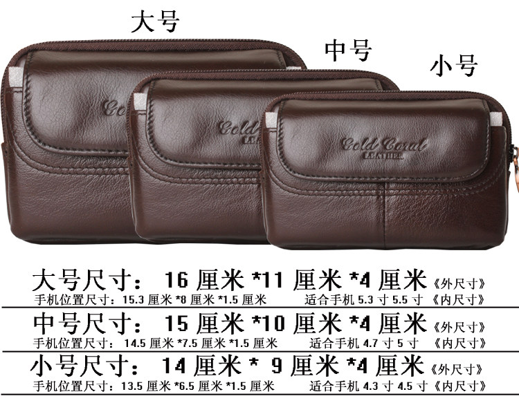 新款真皮男腰包4.3/4.5/4.7/5.0/5.3/5.5寸穿皮带手机腰包