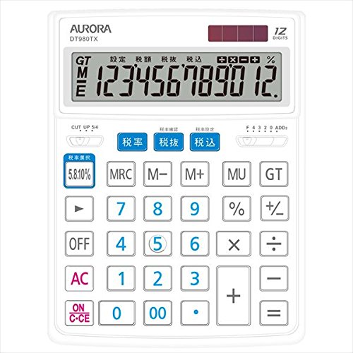 Aurora Japan tabletop large calculator 12-digit display white DT980TX-W