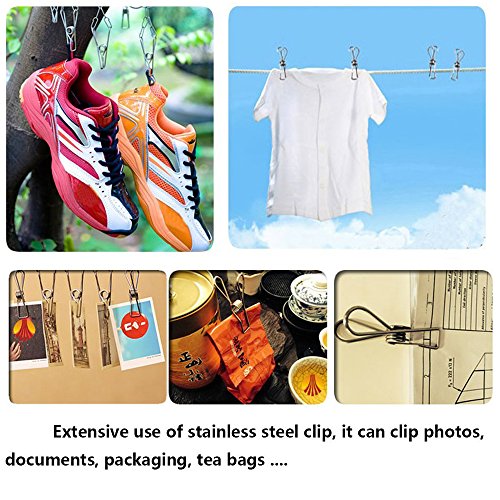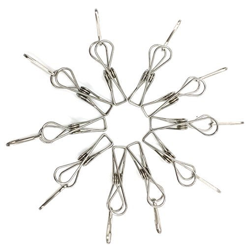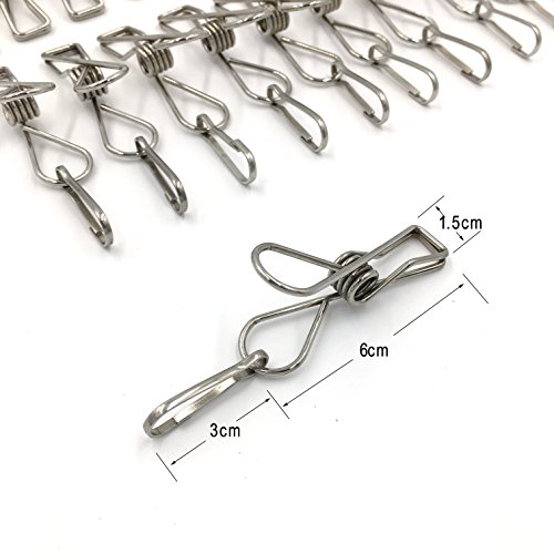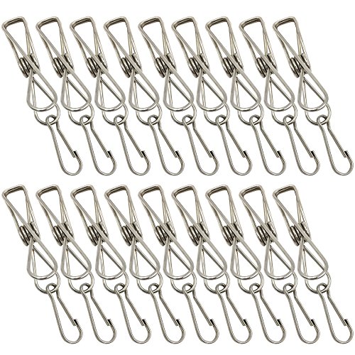 Stainless Steel Wire Clothes Clips by Latom, Pack of 20 Hanging Clothes Pins with Hooks