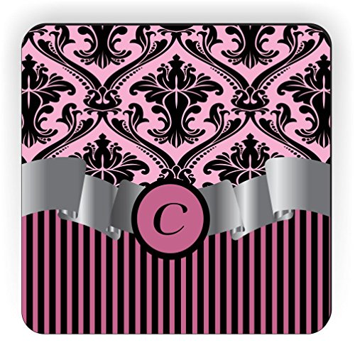 Rikki Knight Letter "C" Initial Light Pink Damask and Stripes Monogrammed Design Square Fridge Magnet