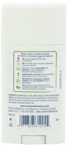 Tom's of Maine Natural Deodorant Stick, Unscented, 2.25 Ounce, Pack of 6
