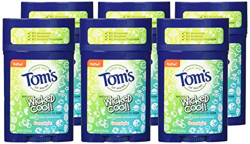 Tom's of Maine Wicked Cool Teen Boys Natural Freestyle Deodorant, 2.25 Ounce (Pack of 6)