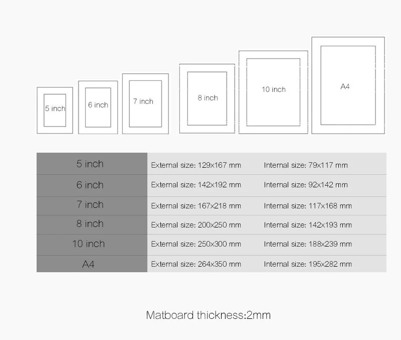 Size:Matboard outer size :8x10 " (203x254 )mm,Matboard opening size:117x16