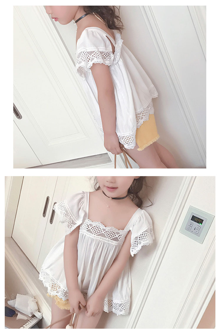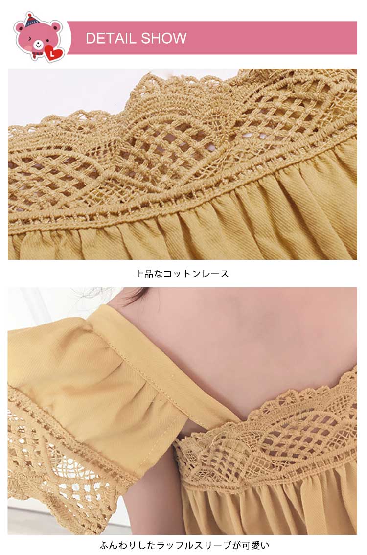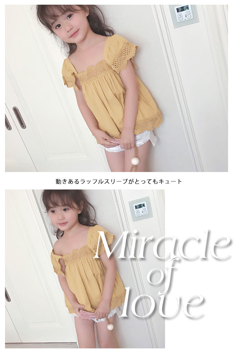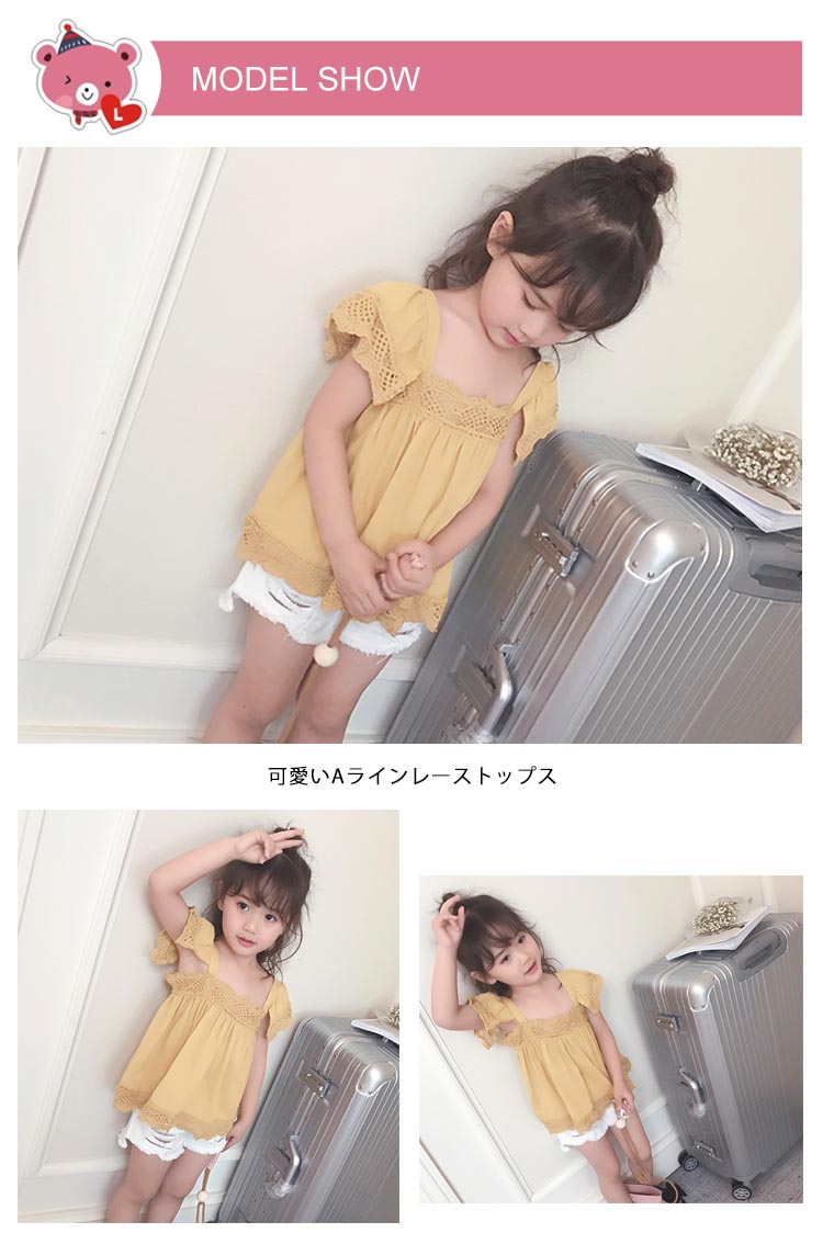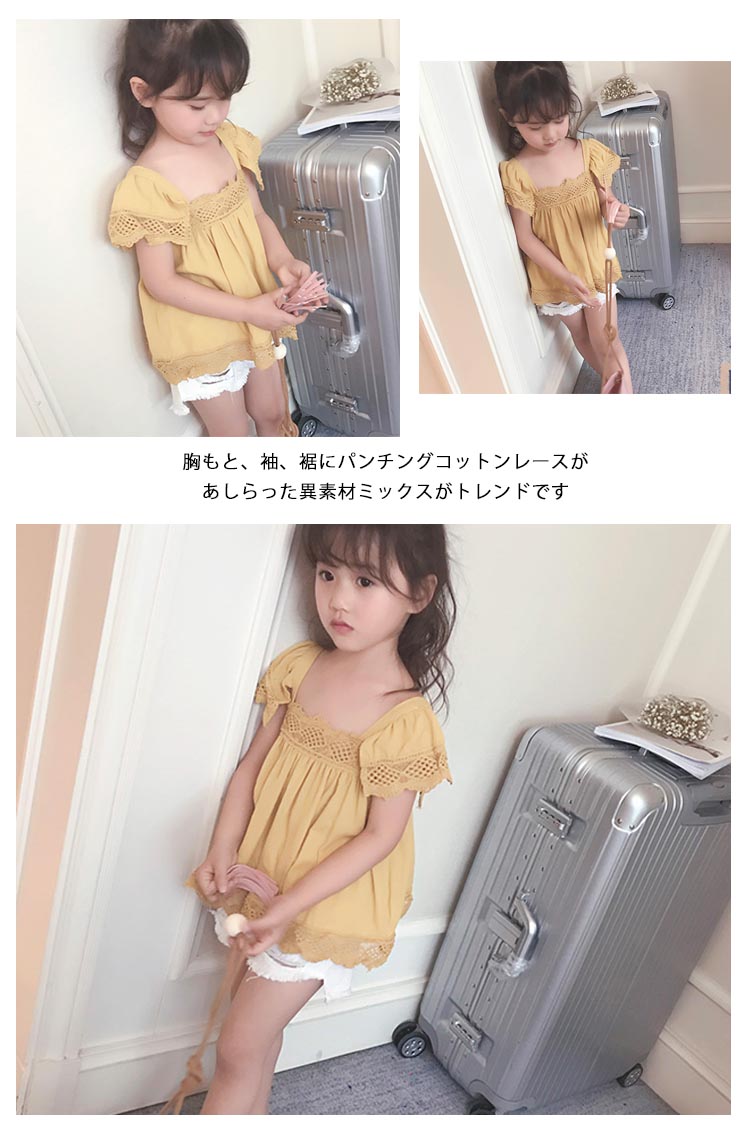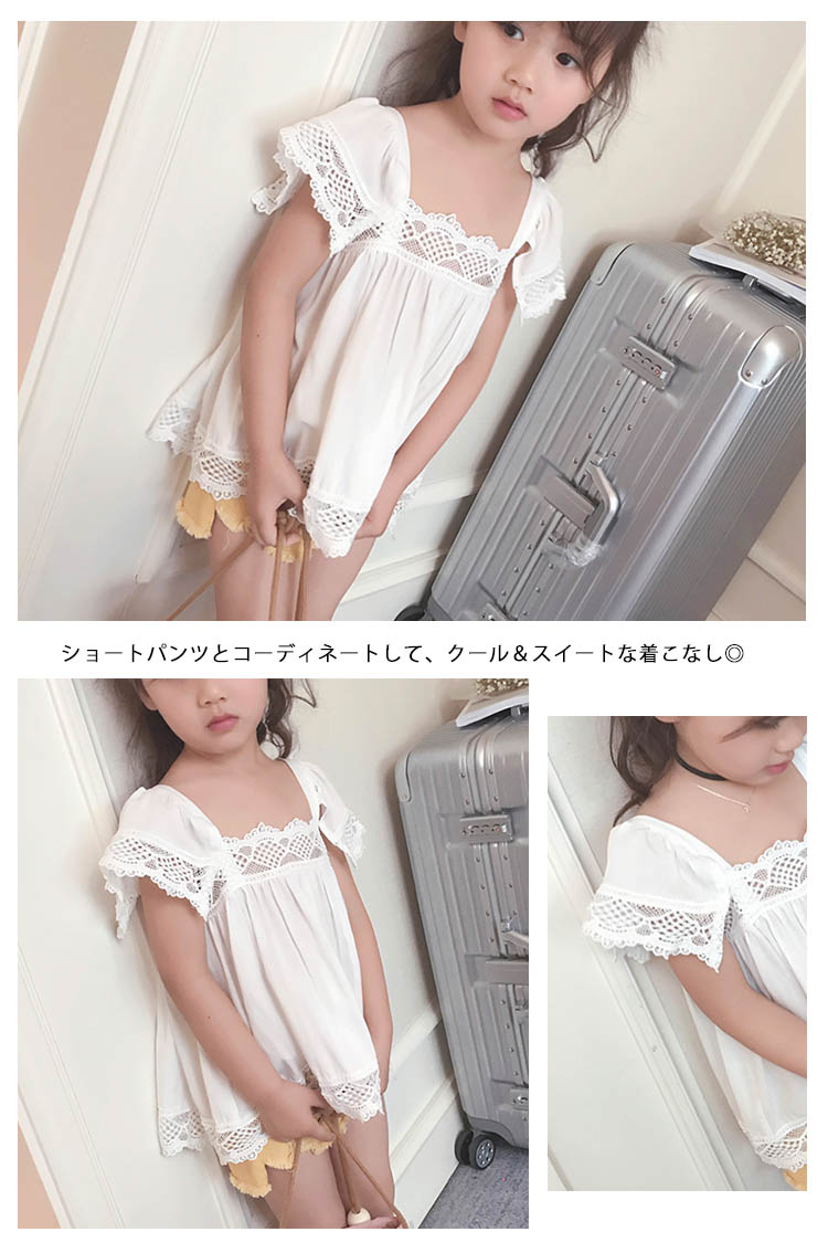 | 可愛いAラインレーストップス胸もと、袖、裾にパンチングコットンレースがあしらった異素材ミックスがトレンドです動きあるラッフルスリーブがとってもキュートショートパンツとコーディネートして、クール&スイートな着こなし◎ | |