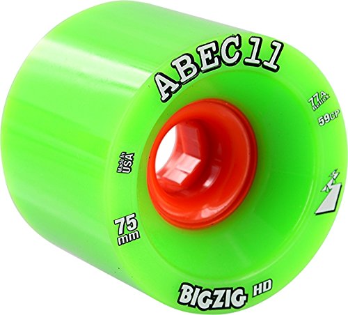 Studio : ABEC 11 Publisher : ABEC 11 Binding : Misc. Product Description For the ultimate longboard adventure, you need the ultimate wheels! These ABEC 11 wheels are it. Cruise at top speeds with a totally smooth ride. Made from high-quality materials and built to last, they measure 75mm in diameter, 77a in hardness. ABEC 11 BigZig HD Longboard Skateboard Wheels are sold in (1) set of four (4) wheels.Note: Bearings not included. 0