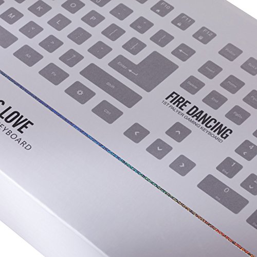 -. Feature : 104 standard keys, 26 keys without conflict, splash-proof, interchangeable "WASD" keys and "Arrow" keys, WIN keys can be disabled for better control and gaming experience / 7 color illuminated backlit with breathing LED effects and 3 phase of brightness for nice and shineful looking, the letters can light up so that users can type/play games even in dark environment / Keystroke lifetime can be as long as 30 million times while keystroke feeling remains / ABS KeyCaps,POM Switch / Perfect Water & Dust Proof with 104 floating keys and whole closed water-proof design