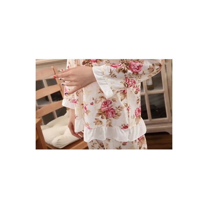 꽃무늬 프릴 의 귀여운 파자마 박수 긴 소매 상하 세트 (L)