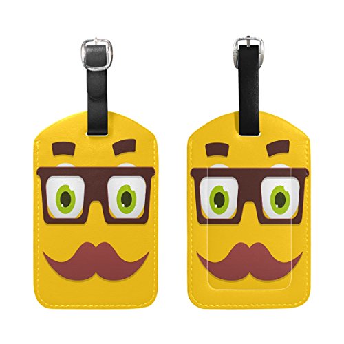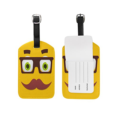 (Hokkien)/Accessories/Luggage, Bags Travel/DIRECT FROM USA/Blue Viper PU Leather Luggage Tags Personalized Funny Cartoon Face Design Pattern Suitcase Labe...