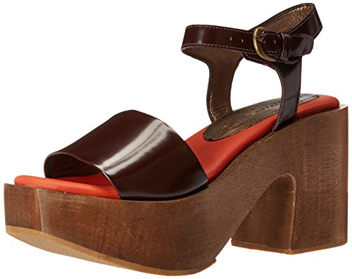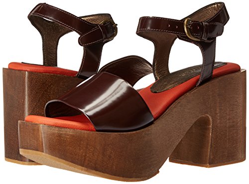 Product DescriptionAn open toe clog sandal with a 3 base and 1 platform in a bordo satin a do leather.0