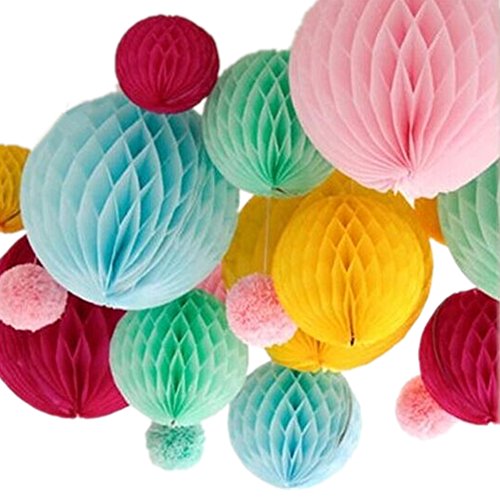 Aimeart Tissue Paper Honeycomb Ball 12" 3 Pcs Wedding Celebration Props Festival Store Window Decoration, Red