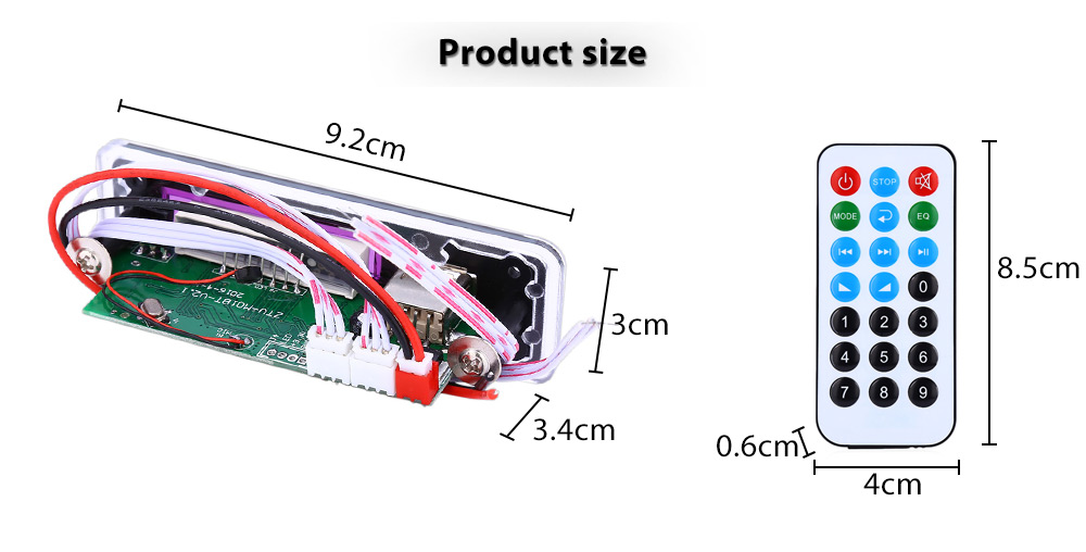 Package Contents: 1 x M01BT MP3 Decoder Board, 1 x Controller