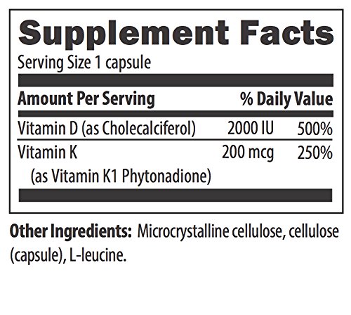 SUPERIOR ABSORPTION - The addition of 200 mcg of Vitamin K (as K1) aids in the absorption of Vitamin D. The K1 form occurs naturally in vegetables. *