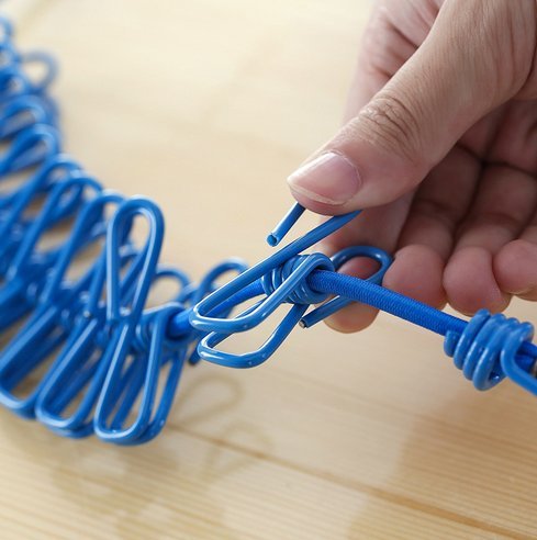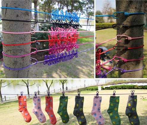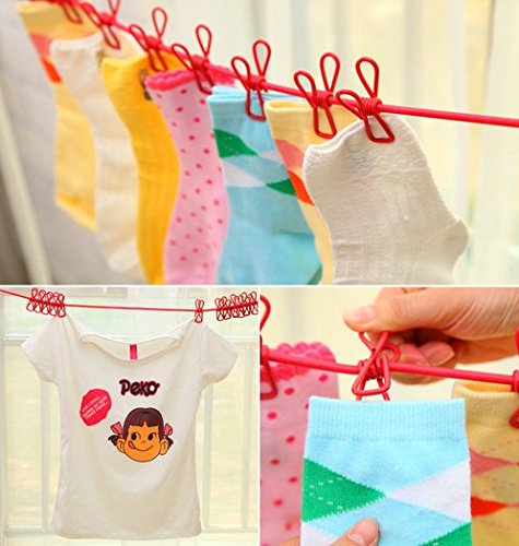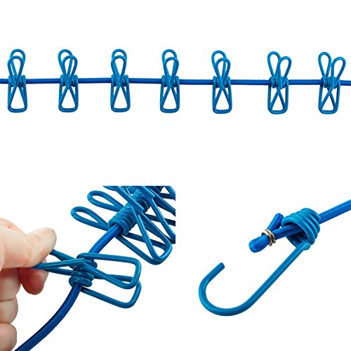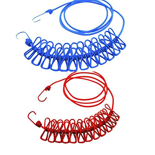 Amadear 2 Pack Portable Outdoor Travel Windproof Elastic Washing Line Clothes Line with 12 Pegs (Blue+Red)