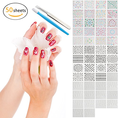 Variety designs - wonderful 50 sheets 3D nail art stickers include lots of cute designs, such as flowers, butterflies, stars, etc.