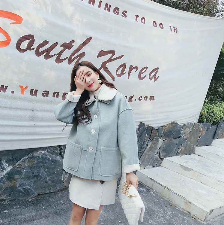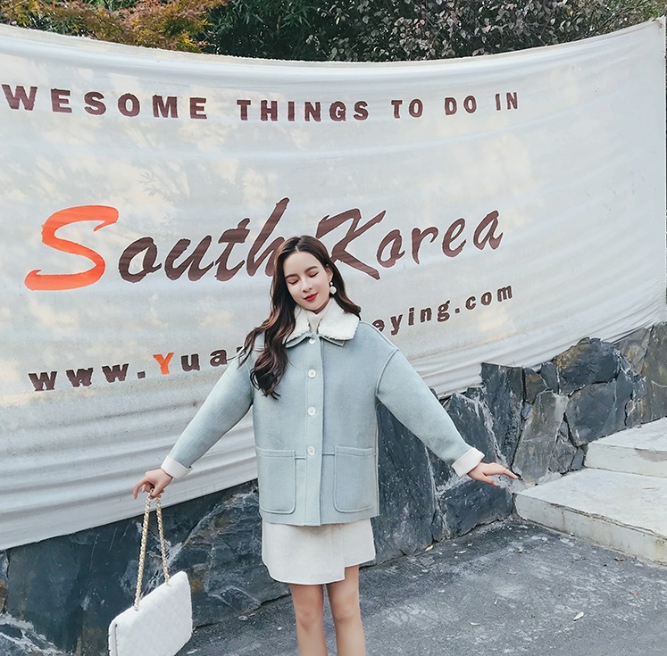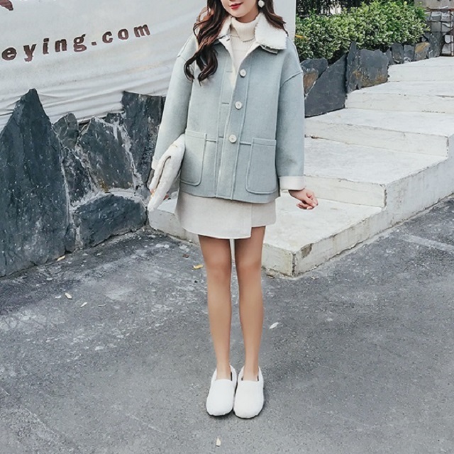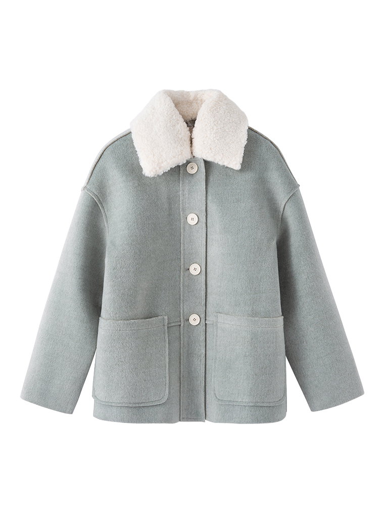 女性の可愛らしさを惹き立てるブルーカラー×ボアデザインのアウターです◎