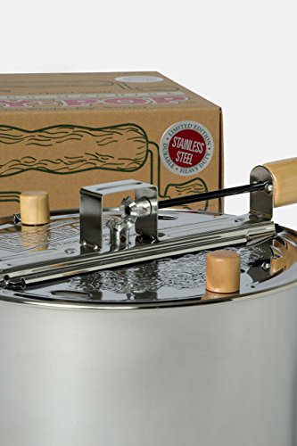 The Original Whirley Pop Stainless Steel Popper makes 6 quarts in less than 3 minutes.