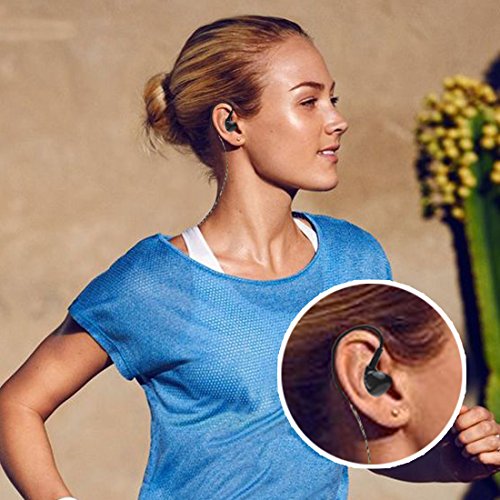 SECURE FIT OVER EAR EARBUDS: Thanks to pliable over the ear loops and ergonomic ear bud design, these workout headphones in ear fit comfortably and stay put in ears while you're runing, jogging, weight lifting, walking and gym training. It also come with 5 ear piece sizes to ensure a custom comfortable fit