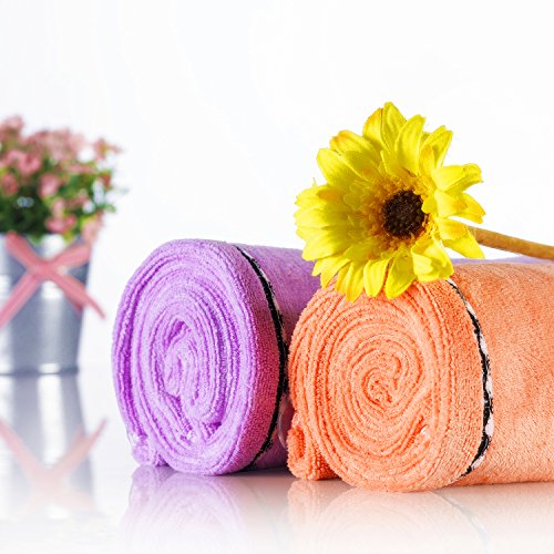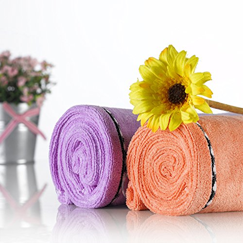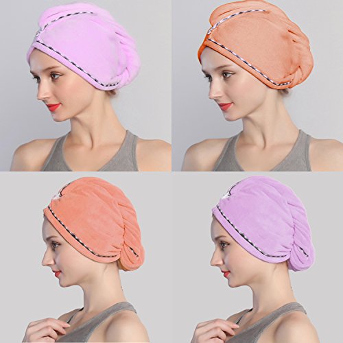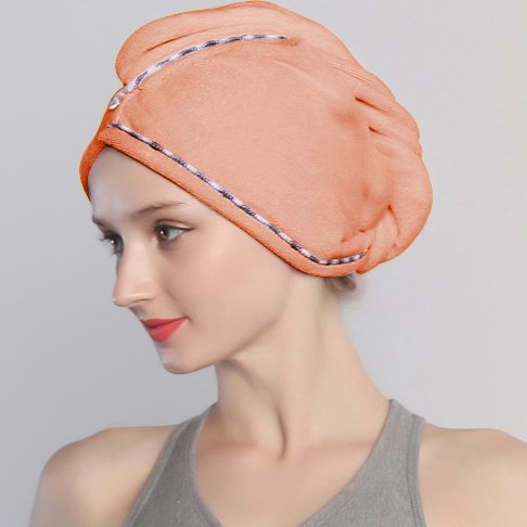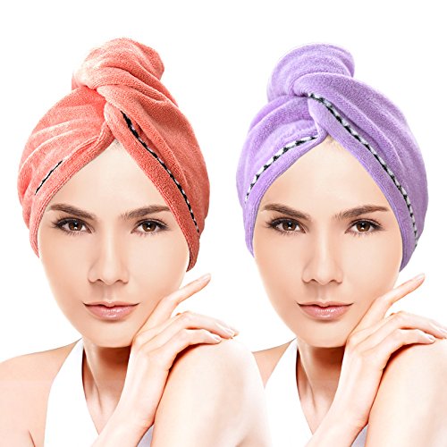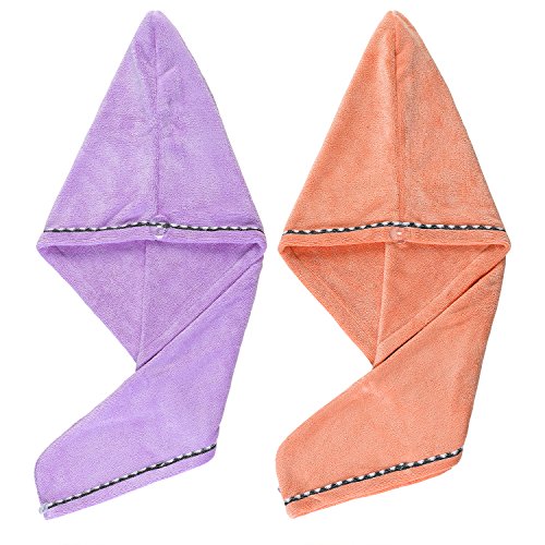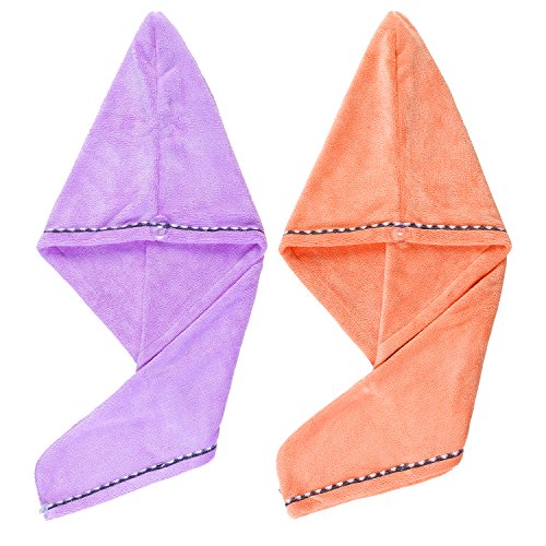 Specifications: Size: 25.6' × 10.4'. Color: Purple and orange. Material: Microfiber. Applicable people: Female and male, adults and children. Secure button: Yes. How to use? 1.Bend to let your hair hang down, put hair towel on your head (the end with button); 2. Wrap your hair with the hanging part of the towel while twisting it; 3. Loop the towel and fix it with the button. Washing Tip: Hand wash or machine wash. No softener, bleaching or dry cleaning. Package includes: 1x Purple microfiber hair towel. 1x Orange microfiber hair towel. 0