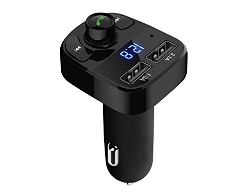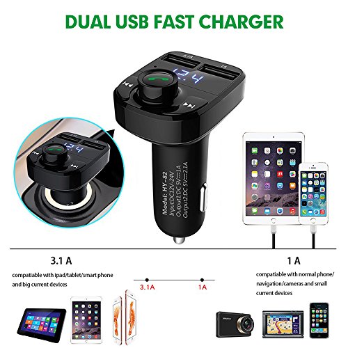 Sicotool FM Transmitter, Wireless In-Car Bluetooth Receiver Stereo Radio Adapter Car Kit Hands Free Calling with Dual USB Car Charger Ports for Smartphones, iPad ,Tablets, TF Card, MP3 and More
