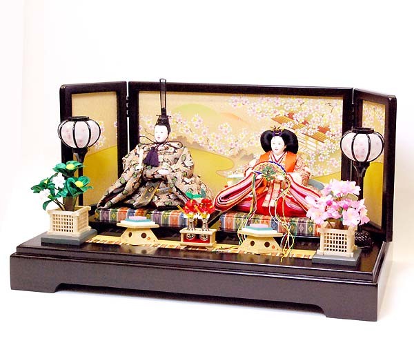 ・台座・屏風等には落ち着いた色目の雛人形セット。