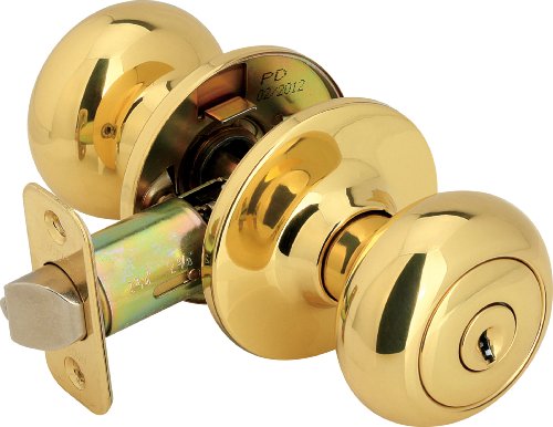 -. Title : Legend 809129 Biscuit Style Front Door Knob Entry Lockset, US3 Polished Brass Finish
