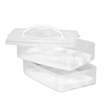 Includes 2 removable, stackable egg holders. Great for deviled or whole eggs and perfect for potlucks, picnics, and parties.