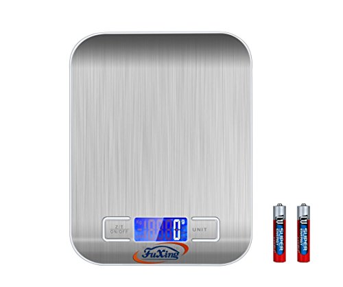 FuXing Kitchen Scales, Food Scale, Digital Jewelry Scales, Coffe Scale, Mini Electronic Pocket Scales, Accurate Gram and Slim Design Stainless Steel, Batteries Included Silver Colour