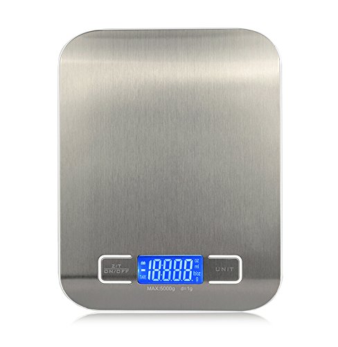 - ♥ High Precision: This kitchen scales equipped with 4 high precision sensors provides 4 units (ml/oz/g/lb.oz) to select on. As an accurate gram scale, it could measures up to 5kg in 1g, it provides you with instant and accurate results.