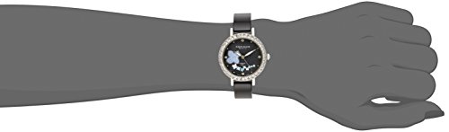 Akribos XXIV Women's AK762SSB Swiss Quartz Movement Watch with Black Mother of Pearl Dial with Printed Flowers and Silver and Black Ceramic Bracelet