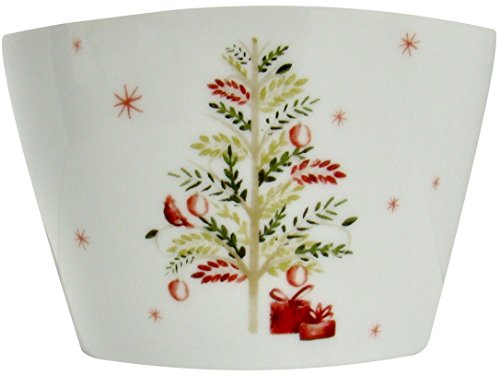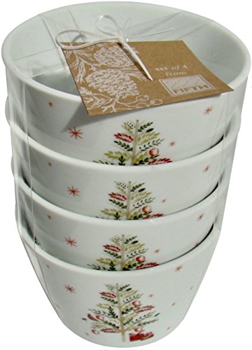 Christmas Dessert Bowls by 222 Fifth - Winter Cheer Pine Tree Snowflakes Fruit Bowl Set of 4 Porcelain