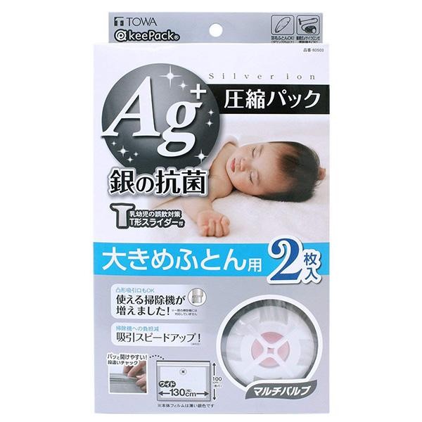 | 仕様 | 圧縮パック2枚入 乳幼児の誤飲対策T形スライダー1個付 抗菌効果期間:約6ヶ月※使用状況によって異なります。 【収納物のめやす(1枚あたり)】 シングル掛けふとん(ロング)なら1枚 シングル敷きふとんなら1枚 ダブル掛けふとんなら1枚 ダブル敷きふとんなら1枚 ※ふとんの大きさや厚みなどにより異なる場合があります。 |
