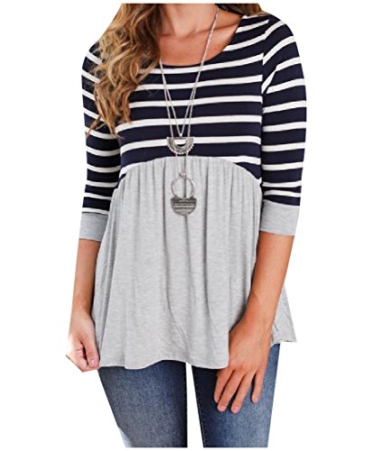 -. Title : Tootess Women's Elegant Pinstripe Stitch O-Neck Soft Plush Down Tops