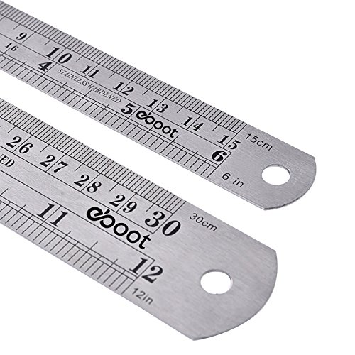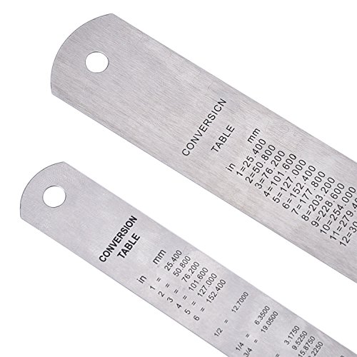 eBoot Stainless Steel Ruler 12 Inch + 6 Inch Metal Rule Kit with Conversion Table