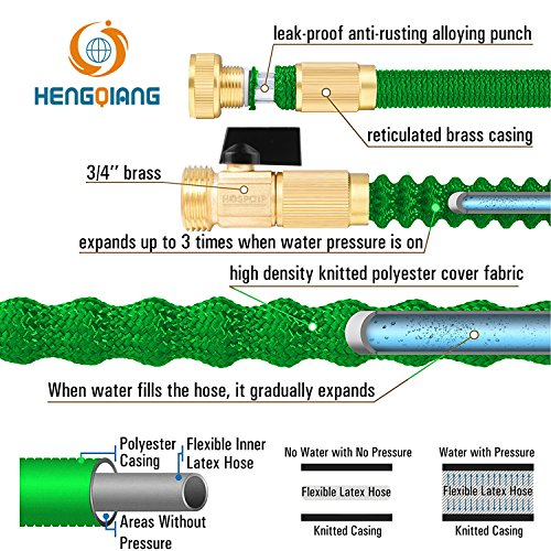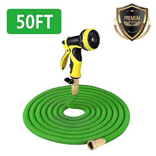 HENGQIANG 50FT Expandable Garden Hose, Brass Fittings Strongest Hose Pipe with 9 Spray Pattern, Durable Triple Layered Latex Core, Expanding, Retracting, Kink Free Water Hose