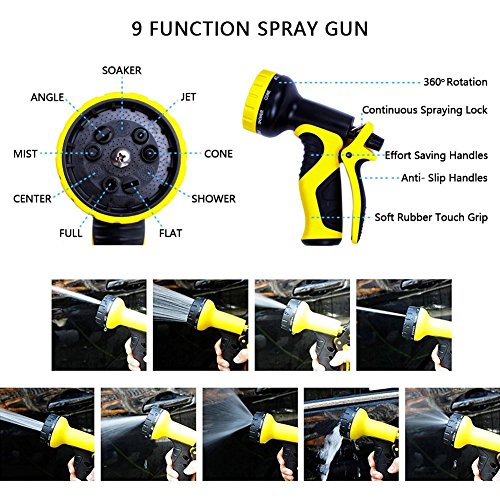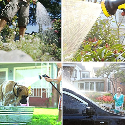 - 【9 Functions Sprayer】The sprayer boasts non-slip and comfortable grip and rotating bezel for choosing 9 spray patterns: Full, Flat, Shower, Cone, Jet, Soaker, Angle, Mist, and Center. Great for house/car/floor/yard washing, garden watering, pet cleaning, having fun or business use.