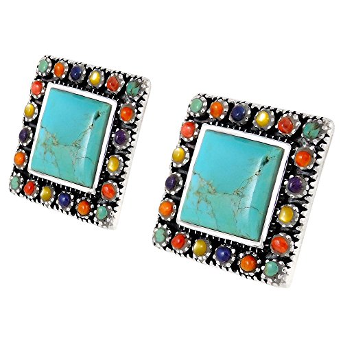 -. Feature : 925 Sterling Silver (Solid) / Genuine Turquoise / Approx. 3/4" x 3/4" (see ruler image) / Premium Quality / Turquoise Network: Fine jewelry at UNBELIEVABLE low P.R.Ices!